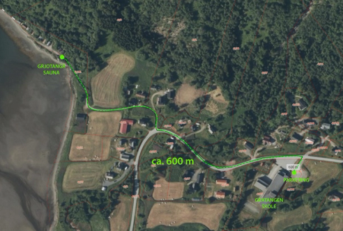 - Du kan ikke kjøre ned til saunaen, da veien er forbeholdt grunneiere og lokalbefolkning, men det finnes en fin parkering ved Gratangsbotn Skole som du kan parkere på og gå ned til badstua. Distansen er på snaue 600 meter, og dette er jo også en fordel med tanke på å få blodpompa i gang før du setter i gang sauna-ritualet ditt. (SE VEIBESKRIVELSE)